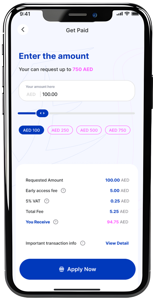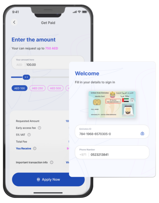 Employees access a portion of their earned wages on-demand via the mobile app, with real-time transfers to their bank accounts, salary cards, or wallets.
